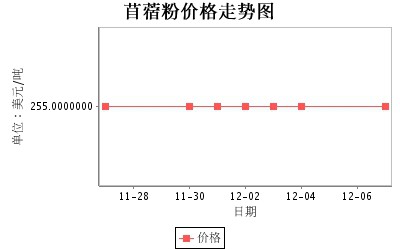 | 苜蓿粉 | 2015-12-04 | 美國市場批發價,脫水飼料,FOB 堪薩斯城卡車交貨 | 美元/噸 | 255.00 |