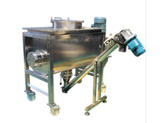 該款混合機通過出料閥底部配以快拆聯接式的螺帶螺旋器實現出料聯接,降低了機器的整體高度。螺旋上料器可加配腳踏開關,是半自動化操作的最佳選擇。